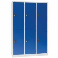 Svařované šatní skříně s boxy v několika barevných variantách, vhodné pro odkládání osobních věcí zaměstnanců na pracovištích, v převlékárnách nebo sportovních klubech. Konstrukce z ocelového plechu tloušťky 0,7 mm s výztuhami zajišťuje dobrou stabilitu. Účinné odvádění vlhkosti z oděvů větracími otvory zadní straně boxů. Dvířka boxů jsou zavěšená na vnějších pantech a jsou opatřeny plastovými nárazníky pro snížení hluku při zavírání. Uzamykání každého boxu cylindrickým zámkem. Možnost umístění štítku se jménem v plastovém úchytu na dveřích.Svařované šatní skříně Manutan Expert Brick, 6 oddílů, cylindrický zámek