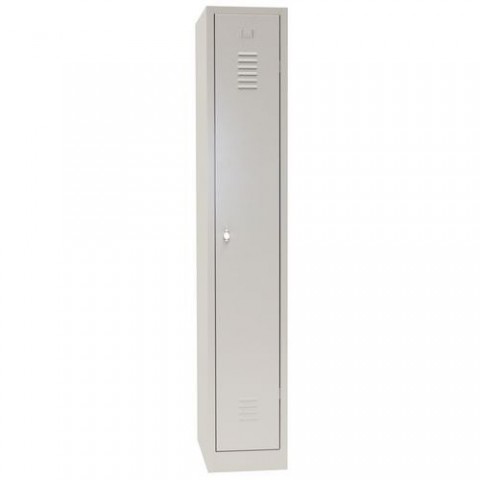 Svařované šatní skříně prémiové kvality skládající se z jednoho samostatně uzamykatelného oddílu. Bezpečnost zvyšuje zejména vyztužení dveří po celé délce, a to včetně rámu, a perforace dveří, kterými nelze pohlédnout dovnitř. Šatník z ocelového plechu tloušťky 0,7 mm. Účinné odvádění vlhkosti z od??vů větracími otvory na dveřích. Dveře jsou uloženy na vnitřních výsuvných pantech s možností otevření dveří až 180° a jsou opatřeny plastovými nárazníky pro snížení hluku při zavírání. Uzamykání otočným uzávěrem na visací zámek (lze dokoupit jako příslušenství) nebo cylindrickým zámkem na klíč. Možnost umístění štítku se jménem v horní části dveří. Na vyvýšeném rámu. Možnost dokoupení lavičky pod šatní skříň a šikmé stříšky.Svařované šatní skříně Manutan Expert DURO PROFI, 1 oddíl