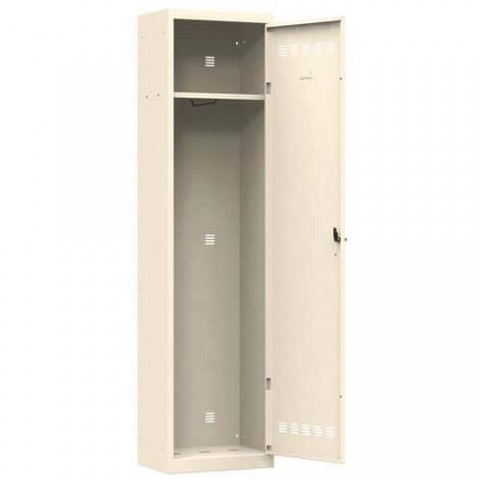 Šatní skříň svařovaná z ocelového plechu tloušťky 0,7 mm. Vybavena tyčí na ramínka. Uzamykání jednobodovým cylindrickým zámkem se dvěma klíči. Perforovaná dvířka zajišťují účinné odvětrávání vnitřního prostoru, možnost umístění štítku se jménem.Svařované šatní skříně Vinco, 1 oddíl, 500 mm, cylindrický zámek