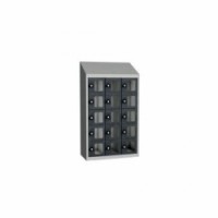 Svařované boxové skříně s malými schránkami s průzorem z plexiskla na osobní věci nebo ke skladování svačin a obědů. Jednotlivé schránky jsou samostatně uzamykatelné visacím zámkem. Možnost umístění štítku se jménem nebo osobním číslem. Opatřeny horním šikmým nástavcem, otevírání dvířek až do úhlu 110°. Upevnění na zeď, vytvoření větších bloků spojením více skříní dohromady. Rozměry průzoru v x š - 117 x 95 mm.Svařované skříně na osobní věci Olaf s průhlednými dvířky, 15 boxů, otočný uzávěr