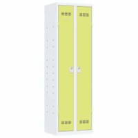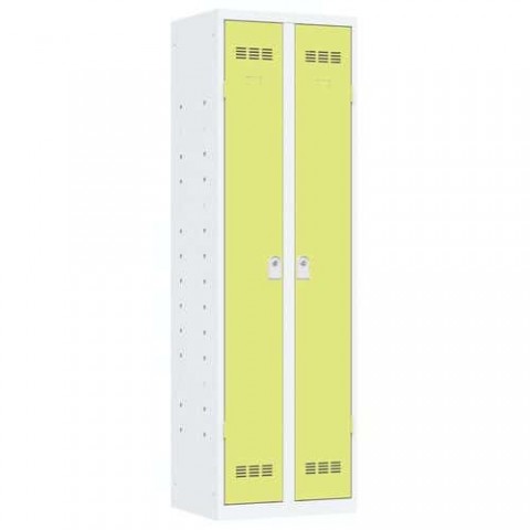 Svařovaná víceúčelová skříň svařovaná z ocelového plechu tloušťky 0,7 mm. Vnitřní prostor rozdělen do několika sekcí k uložení pomůcek, materiálu apod. Uzamykání cylindrickým zámkem se dvěma klíči. Ventilace ve dveřích, možnost umístění štítku se jménem.Svařované skříně víceúčelové Vinco, 2 oddíly, 600 mm, cylindrický zámek