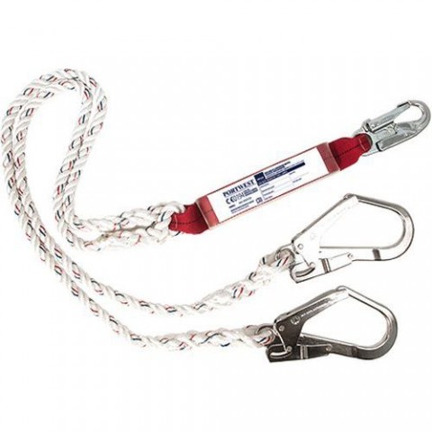 Celková délka 180cm dvě 120cm lana na koncích s ocelovými háky a jedním záchytným okem. CE certifikaceTlumič pádu se dvěma lany, bílá