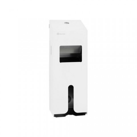 Dávkovač na dámské hygienické potřeby vhodný do škol, na sportoviště, veřejné toalety aj. Pojme až 35 dámských vložek a 30 tamponů (maximální rozměr vložek 11,5 x 9 cm). Při vytažení jedné hygienické potřeby se automaticky vysune další. Uzamykatelný cylindrickým zámkem na klíč.Zásobníky na hygienické vložky a tampony Merida Stella