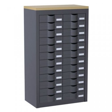 Velkokapacitní skříň se zásuvkami na dokumenty do velikosti 24 x 32 cm. Možnost výběru ze dvou barevných variant.Zásuvkové skříně Paperflow