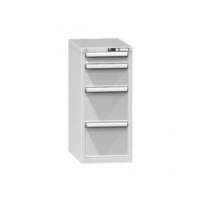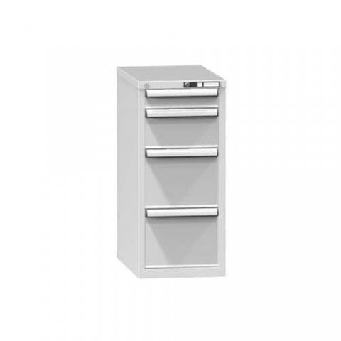 Zásuvková skříň je opatřená mechanismem centrálního zamykání a blokace zásuvek. Zásuvky jsou základním skladovacím prvkem, a proto splňují vysoké požadavky na pevnost a stabilitu. Korpusy zásuvkových skříní tvoří svařenec jednotlivých konstrukčních dílů z kvalitních ocelových plechů. Vnitřní konstrukce korpusů je opatřena perforací po 25 mm. Tuto perforaci využíváme k uchycení vodicích lišt zásuvek, jejich výškovému uspořádání a nakonfigurování požadované zásuvkové sestavy. Přestavování vodicích lišt nebo háčků polic probíhá jednoduše a velice rychle bez použití nástrojů.Zásuvkové skříně ZH5, 442 x 753 x 990 mm
