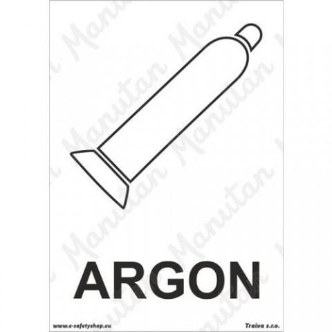 Bezpečnostní značka, tabulka nebo samolepka "Argon" je tištěna na vysoce kvalitním materiálu, barvami s vysokou odolností proti otěru a UV záření. Provedení plně odpovídá požadavkům právních a technických předpisů, zejména Nařízení vlády č. 375/2017 Sb., ČSN ISO 3864-1, ČSN ISO 3864-2, ČSN ISO 3864-3, ČSN ISO 3864-4. Tyto tabulky musí být umístěny tam, kde jsou skladovány kovové tlakové láhve k dopravě plynů, z nichž alespoň některé jsou naplněny argonem a kde hrozí, že by jejich nesystematickým uložením mohlo dojít k promíchání láhví s různým obsahem a tím k nebezpečí vzniku požáru nebo výbuchu s následkem úrazu nebo škody na majetku.Informační tabulky - Argon