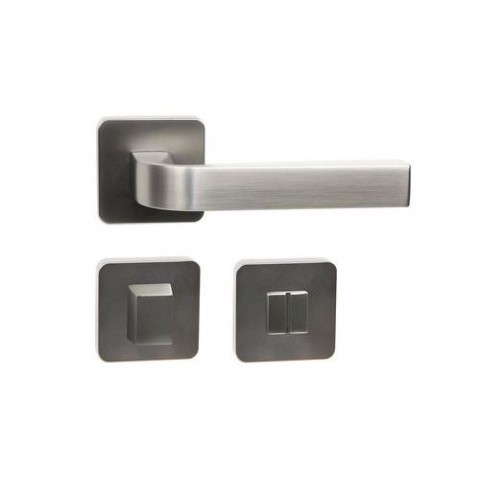 Zamakové kování na čtvercových rozetách s vratnou pružinou klik. Použitý materiál vykazuje vysokou pevnost a odolnost povrchu proti opotřebení. Přesné opracování hran.Interiérová kování Roma.WC