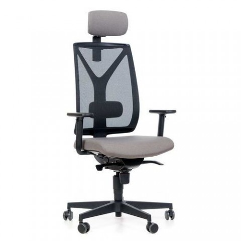 Kancelářská židle Leaf se síťovaným opěrákem a s textilním sedákem a opěrkou hlavy. Sedák ze studené pěny o tloušťce 45 mm je čalouněn v látce ERA CSE13 - šedý melír, zádový opěrák je potažen samonosnou síťovinou NET 202 v černé barvě. Synchronní mechanika s hloubkovým posuvem sedáku. Součástí je hloubkově stavitelná bederní opěrka a výškově stavitelné područky s měkčenými podloketníky. Hlavová opěrka lze výškově i hloubkově nastavit dle potřeb uživatele.Kancelářská židle Leaf