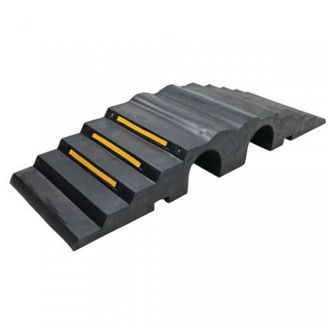 Přejezdová rampa, vhodná k ochraně kabelů, hadic a trubek. Možné zatížení této rampy je až 20 tun. Speciální tvarování slouží k snadnějšímu přejezdu. barva: černá/žlutá v x š x h: 125 x 300 x 850 mm průměr otvorů: 90 mm počet otvorů: 2 nosnost: 20 000 kg hmotnost: 15,9 kg protiskluzový povrchPřejezdová rampa