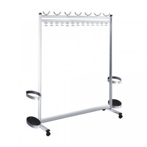 Vysoce kvalitní hliníkový věšák na kabáty s extra velkou kapacitou. Mobilní věšák s háčky na klobouky a oblečení a 4 samostatně zaaretovaná kolečka. Stojan na deštníky lze namontovat na pravou nebo levou stranu.Řadové mobilní věšáky Kerkmann Multiline