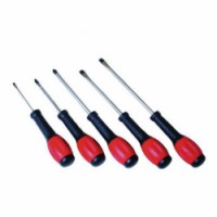 Sada pěti šroubováků s protiskluzovou ergonomicky tvarovanou rukojetí pro lepší manipulaci. Šroubováky jsou vyrobeny z CrV oceli.Sada šroubováků, 5 ks