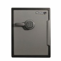 Trezor t masivní ocelová konstrukce. Odolný vůči vodě (24 hod) a ohni (více než 60 min). 6 ocelových západek o průměru 25 mm a skryté panty zabraňující vypáčení. Nastavitelný digitální kombinační zámek. Vestavěná schránka ve dveřích, hluboká miska a uzamykatelný šuplík. Podsvícená klávesnice a LED osvětlení interiéru. Možnost upevnění trezoru k základně. Objem 56,5 l. Nastavitelné police.Trezor Master Lock odolný vodě a ohni