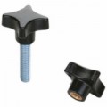 Černé polyamidové knoflíky vyztužené skleněnými vlákny. Matný povrch, jemná zrnitost materiálu. Vynikající odolnost vůči nárazům, chemikáliím a povětrnostním vlivům. Mosazná vložka a pozinkovaný ocelový závit. Použití od - 50° do + 130° Celsia.Upínací knoflíky Boutet PC