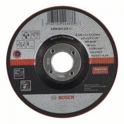 Na lehké hrubování. Díky své pružnosti se kotouč ideálně hodí pro obrábění zakřivených povrchů. Další přednosti kotouče: nižší vibrace a hlučnost, chladné broušení (menší tepelné zabarvení). Není potřeba žádný opěrný talíř. Hodí se pro použití na nerezovou ocel (Inox), kov a hliník. balení: 10 x BAL, 1ks v BAL o otvoru hřídele: 22,23 mm o: 115; 125 mm tloušťka: 3 mm typ: WA 46 BFBosch - Hrubovací kotouče polopružné - Vibration Control