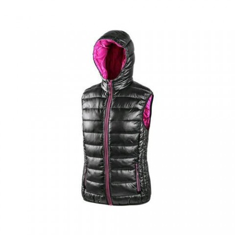 Dámská, zateplená vesta s kapucí. Velikost: XS-XXXL Rozdělení: Dámské Materiálové složení: 100% nylon, výplň 100% polyester, podšívka 100% polyester Barva: černo-růžováDámská zimní vesta OMAK, černo-růžová