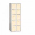 Svařované boxové skříně s odlehčenou konstrukcí a výztuhami zajišťujícími dobrou stabilitu. Vhodné pro odkládání osobních věcí na pracovištích, kulturních akcích, v převlékárnách apod. Vyrobeno z ocelového plechu tloušťky 0,5 mm. Perforovaná dvířka zajišťují účinné odvětrávání vnitřního prostoru. Dvířka jsou zavěšena na vnitřních pantech. Jednotlivé boxy jsou samostatně uzamykatelné cylindrickým zámkem s možností výměny za otočný uzávěr (nutno dokoupit zvlášť). Vnitřní prostor boxů je hladký a snadno udržovatelný. Možnost umístění štítku se jménem.Svařované šatní skříně Eric odlehčené, 10 boxů, cylindrický zámek