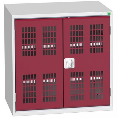 Kovové dílenské skříně s drátěnými dveřmi pro dobrou ventilaci i přehlednost obsahu. Pozinkované police s nosností 75 kg jsou výškově nastavitelné v rastru 25 mm. Svařovaná ocelová konstrukce, povrchová úprava práškovým lakem. Zamykání tříbodovým cylindrickým rozvorovým zámkem.Dílenské skříně policové s drátěnými dveřmi Bott Verso, výška 80 cm