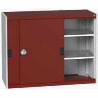 Kovové dílenské skříně s posuvnými dveřmi jsou vhodné do míst s omezeným prostorem. Posuvné dveře včetně madel a zámku. Pozinkované police s nosností 100kg, výškově nastavitelné v rastru 25 mm. Svařovaná ocelová konstrukce, povrchová úprava práškovým lakem.Dílenské skříně s posuvnými dveřmi Bott Cubio, výška 100 cm