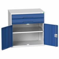 Kovové dílenské skříně Bott Verso se zásuvkami pro efektivní využití v provozech a dílnách. Zásuvky s nosností 75 kg a 100% výsuvy na válečkových ložiskách. Svařovaná ocelová konstrukce, povrchová úprava práškovým lakem. Centrální uzamykání cylindrickým zámkem se dvěma klíči.Dílenské zásuvkové skříně Bott Verso, výška 80 cm, 2 zásuvky, 1 skříňka
