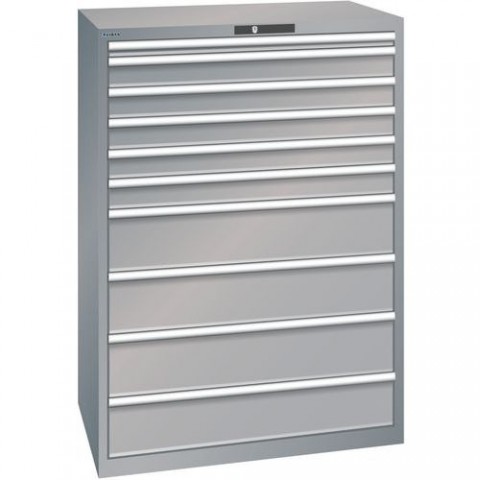 Dílenské skříně s plně výsuvnými zásuvkami. Ochrana proti prachu, kapalinám díky uzavřenému rámu s povrchem odolným proti nárazům a oděru. Bezpečnostní pojistka zabraňující pádu a individuálnímu zamykaní zásuvek (ochrana proti převrácení). Ochrana proti korozi pomocí elektroforetického imerzního lakování a stříkání. Profesionální označování pomocí softwaru pro označování LISTA Script a výklopné úchytky pro vkládání štítků. Dokonale tichý pohyb díky saně bez příčníku.Dílenské zásuvkové skříňe Lista, 1023x725x1450 mm, 10 zásuvek
