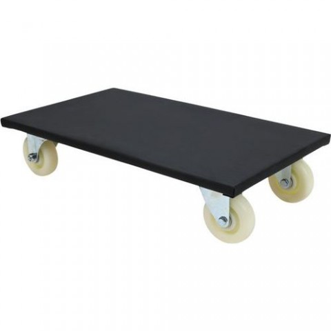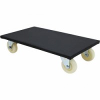 Dřevěná pojízdná plošina s černou plastovou protiskluzovou vrstvou na povrchu. Transport zajišťují 4 otočná polyamidová kola.Dřevěná přepravní plošina Manutan Expert, do 500 kg