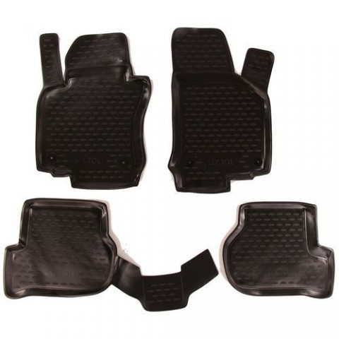 Koberce jsou vyrobeny přesně podle tvaru podlahových ploch konkrétního typu vozidla. Odpadá tak složité porovnávání mnohdy nepřesných univerzálních koberců a nutnost problematického zastřihávání do požadovaného tvaru. Koberce jsou snadno omyvatelné, s rychlou možností vysypání nečistot a snadnou instalací. Vysoce odolná pryž zajišťuje kobercům vysokou pružnost, která zabezpečí při ohýbání (např. při skladování), že se koberce roztáhnou opět do původního tvaru. Výhodou těchto koberců je zvýšený okraj, chránící interiér interiéru vozidla před vysypáním sypkých materiálů (písek, hlína) či vylitím tekutin (voda), nečistot, prachu, sněhu apod. do interiéru vozidla, s odolností vůči prosáknutí olejů, benzínu a částečně také vůči elektrolytu z akumulátorů. Nepříjemnému posunu koberců po podlaze vozidla či shrnování pod pedály účinně zamezí speciální protiskluzové tvarování na spodní straně koberců, které se snadno přichytí k originálnímu čalounění podlahových prostorů. Koberce jsou snadno omyGumové koberce Volkswagen Golf VI 04/2009- , hatchback, bez loketní opěrky SIXTOL