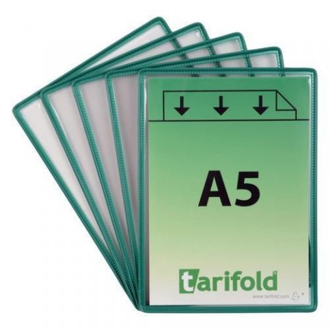 Průhledné tabulky A5 ke stojanům Tarifold Roto Revo slouží pro přehledné vyvěšení důležitých informací. Rámeček je vyztužen ocelovým drátem. Dostupné v několika barevných variantách.Informační rámečky Tarifold Rotor Revo A5, 5 ks