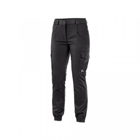 Dámské cargo kalhoty vyrobeny ze směsi bavlny a vlákna Sorona® firmy DuPont - vysoce odolného vůči skvrnám, vyznačujícího se vysokou pevností a tuhostí. Díky tomuto vláknu je materiál měkký, pružný a lze jej prát na teplotu 60 °C. Pas s poutky na opasek, vzadu do gumy, 2 přední a 2 zadní kapsy, boční nabírané kapsy - pravá na zip, levá krytá klopou s drukem, nohavice se zúženým gumovým lemem. Velikost: 36-54 Voděodolnost: 60 % bavlna 40 % Sorona® Reflexní doplňky: Ne OEKO-TEX® STANDARD 100: AnoKalhoty cargo CXS UMI, dámské, černé