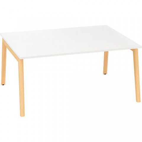 Kancelářské stoly s dřevěným podnožím v moderním designu. Podnoží vyrobené z masivního dřeva jasanu se zápustnými maticemi, z tohoto důvodu se kresba a odstín dřeviny mohou lišit. Kovové části podnoží jsou ošetřené práškovou epoxy-polyesterovou bílou barvou RAL 9010. Stolová deska z laminované dřevotřísky s tloušťkou 25 mm a ABS hranami 2 mm. Možný výběr desky z dezénu buk nebo bílá. Dodáváno ve demontovaném stavu.Kancelářské stoly Bench Alfa Root, 160 x 160 x 74,2 cm