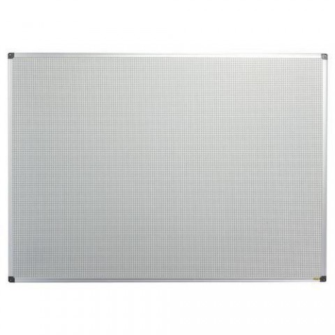 Korková tabule s kovovou sítí a hliníkovým rámem. Rastrová kovová síť v kombinaci s korkovou deskou umožňuje použití magnetů i připínáčků nebo špendlíků.Korková nástěnka s kovovou sítí Bi-Office