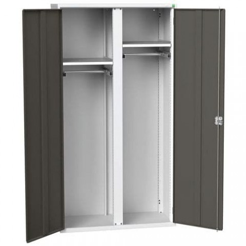 Kovové skříně pro specifické použití v provozech - podle typu vybaveny policemi, zásuvkami, středovou přepážkou nebo i tyčí na ramínka. Pozinkované police s nosnsostí 75 kg, výškově nastavitelné v rastru 25 mm. Zásuvky s nosností 75 kg a 100% výsuvem na válečkových ložiskách. Svařovaná ocelová konstrukce, povrchová úprava práškovým lakem. Vyztužené křídlové dveře s tříbodovým cylindrickým rozvorovým zámkem se dvěma klíči.Kovové skříně pro údržbu Bott Verso, výška 200 cm