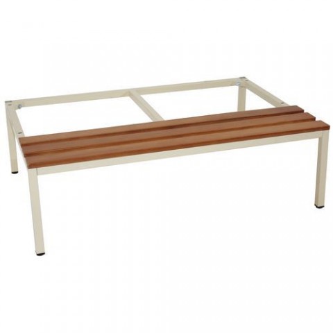 Lavice s ocelovou konstrukcí a dřevěnou sedací plochou se umisťují pod kovové šatní skříně. materiál: dřevo/kov rozměry v x š x h: 35 x 118,5 x 80 cm šířka sedací plochy: 30 cm barva: šedá RAL 7035, béžová RAL 1015Lavice Rose pod šatní skříně, 118,5 cm