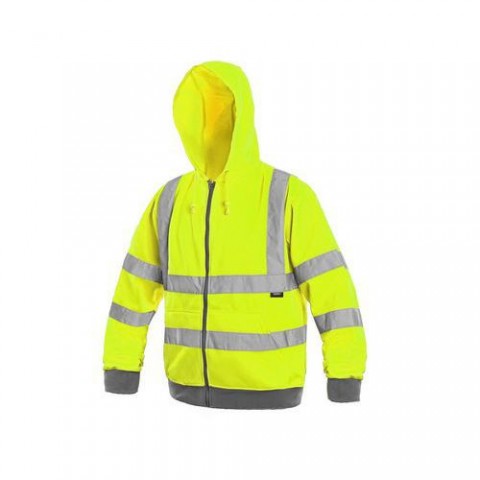Výstražná mikina s reflexními pruhy a kapucí, zapínání na zip, hlavicové rukávy, pas a rukávy ukončeny pružnou manžetou, dvě spodní kapsy. Velikost: S - 3XL Normy: EN ISO 20471 Materiálové složení: 65 % polyester, 35 % bavlna Gramáž: 290 gsm Barva: žlutáMikina FROME, žlutá