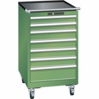 Žebrovaná protiskluzová podložka na vrchu skříně. Ochrana proti prachu, kapalinám díky uzavřenému rámu s povrchem odolným proti nárazům a oděru. Bezpečnostní pojistka zabraňující pádu a individuálnímu zamykaní zásuvek (ochrana proti převrácení). Ochrana proti korozi pomocí elektroforetického imerzního lakování a stříkání. Profesionální označování pomocí softwaru pro označování LISTA Script a výklopné úchytky pro vkládání štítků.Mobilní dílenské zásuvkové skříně LISTA, 5 nebo 7 zásuvek, 564x725x990mm