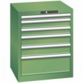 Mobilní zásuvkové skříně Bott Cubio s horní pracovní plochou tloušťky 2 cm typu multiplex/linoleum nebo ohraněný plech s rohoží. Nosnost až 300 kg, robustní svařovaná ocelová konstrukce, povrchová úprava práškovým lakem. Centrálně uzamykatelné zásuvky s výškou 2 x 10, 2 x 15 a 1 x 20 cm, nosností 50 kg a 100% výsuvem na válečkových ložiskách. Ergonomické rukojeti zásuvek s popisovatelnou lištou, systém blokace otevření více zásuvek najednou. Dvě pevná a dvě otočná kola s brzdou o průměru 12,5 cm.Mobilní zásuvková skříň Bott Cubio, 99 x 65 x 65 cm, 5 zásuvek, multiplex/linoleum/rohož