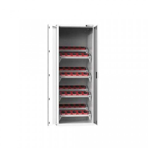 NC skříně jsou opatřeny dvojitými stěnami s perforací pro zavěšení polic, nosičů, nástrojových rámů a zásuvek. V případě vybavení skříne zásuvkami je standardně, z důvodu bezpečnosti (nebezpečí převrácení), dodávána blokace proti vysunutí více zásuvek. Korpus skříně se uzavírá křídlovými dveřmi s panty otočnými o 180°. Zamykání cylindrickým rozvorovým zámkem. Standardní výbavou je systém identifikace otvorů a popisový štítek s funkcí chytrý nábytek. Do skříní je možné zavěšovat zásuvky s půdorysem ZD (36x27).NC skříně s křídlovými dveřmi 36x27D s vybavením, var. 1