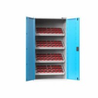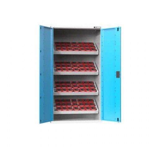 NC skříně jsou opatřeny dvojitými stěnami s perforací pro zavěšení polic, nosičů, nástrojových rámů a zásuvek. V případě vybavení skříne zásuvkami je standardně, z důvodu bezpečnosti (nebezpečí převrácení), dodávána blokace proti vysunutí více zásuvek. Korpus skříně se uzavírá křídlovými dveřmi s panty otočnými o 180°. Zamykání cylindrickým rozvorovým zámkem. Standardní výbavou je systém identifikace otvorů a popisový štítek s funkcí chytrý nábytek. Do skříní je možné zavěšovat zásuvky s půdorysem ZC (54x27).NC skříně s křídlovými dveřmi 54x27D s vybavením, var. 2