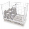 Pozinkované skládací paletové nástavce jsou vhodné pro přepravu a uskladnění zboží na Euro paletách. Poskytují maximální využití úložné plochy palety. Rozměr oka pletiva 100 x 100 mm. Přední stěna je z jedné poloviny sklopná pro snazší přístup k uloženému materiálu.Paletové nástavce se sklopnou stěnou typ 64, pletivové, pozink