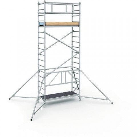 Mobilní lešení v šesti různých velikostech k bezpečnému provádění prací při montážích, opravách a údržbě ve výškách. Vyrobené z hliníkových profilů a příčlí 45 mm. Pracovní plošina o rozměru 60 x 180 cm, opatřená postranními okopovými zástěnami. Lešení od vel. 2 je vybavené stabilizačními podpěrami. Jednoduché ovládání sklápěcího mechanismu jednou rukou díky robustnímu aretačnímu čepu, zajištění a uvolnění se provádí pouze jedním pohybem. Nasazovací čepy z tvrzeného plastu s lehkým chodem, nedochází tak k příčení při zasouvání rámů. Pojízdnost zajišťují plastová kolečka s brzdou o průměru 125 mm. Kolečka lze upravit na výškově stavitelná kolečka pomocí adaptéru koleček (není sou??ástí balení). Lešení splňuje normy EN 1004, třída lešení 3 (nosnost do 200 kg/m2).Pojízdné hliníkové lešení Zarges PaxTower 1T