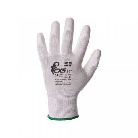 Povrstvené pracovní rukavice z polyesteru neobsahující silikon. Polyuretanová vrstva poskytuje nejvyšší odolnost proti propíchnutí.Polyesterové rukavice CXS polomáčené v polyuretanu, bílé
