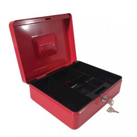 Příruční pokladny v různých barevných variantách s horním úchytem. Obsahují vyjímatelný dělič se 4 přihrádkami. barva: modrá, černá, červená materiál: ocel rozměry v x š x h: 85 x 250 x 200 mm zámek: cylindrický (2 klíče)Přenosné pokladny, 4 přihrádky