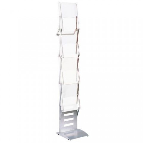 Ideální pro použití na veletrzích. Se 4 přihrádkami A4 a 1 akrylovým okénkem. Zatížená noha. Hliníkový skládací mechanismus, stříbrný.Prezentační stojan Kerkmann Tec-Art