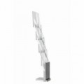 Velmi praktický a odolný skládací stojan. Stojan je vyroben z eloxovaných hliníkových profilů a prostor na prospekty je vyplněn akrylovým sklem. Navržen je tak, aby nabízel dostupnost na letáky a katalogy z obou stran a zároveň, aby zabíral minimum prostoru. K rozložení stojanu stačí pouze vytáhnout směrem nahoru a zajistit ve spodní části stojanu. Rozměr složeného stojanu: 410 x 275 x 110 mm. Rozměr rozloženého stojanu: 350 x 265 x 1 510 mm. Hmotnost: 4,9 kg.Prezentační stojan Twinco, skládací, 5 přihrádek