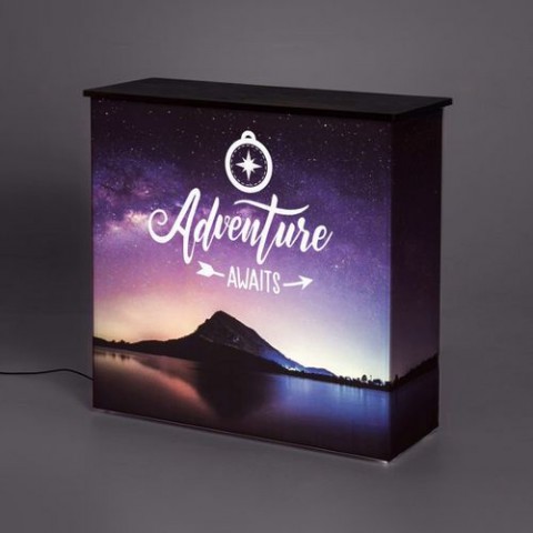 Counter Impress LED zaujme ještě výraznějším světelným efektem. Lehká konstrukce a textilní grafika vytvářejí prémiové provedení. Možnost volitelného podsvícení umocní vizuální dopad. Perfektní volba pro eventy, promo akce a moderní výstavní plochy.Promostolek Impress M včetně LED prosvětlení a trafa