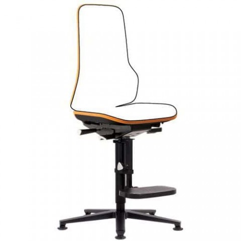 Rámy dílenských židlí Neon Bimos mají ergonomický tvar. Čalounění a konstrukci sedáku lze konfigurovat nezávisle na sobě. Plynulé nastavení výšky sedáku v rozmezí 590 až 870 mm a nastavení v rozmezí 60 mm. Nastavení sklonu sedadla až o 9 stupňů. Individuální nastavení tahu opěradla od 50 do 120 kg.Rámy dílenských židlí Neon Bimos 9571, s podnožkou, kluzáky