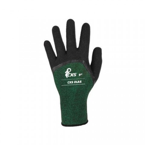 Bezešvé rukavice z jemného polyesterového úpletu, 3/4 povrstveny latexovou pěnou, pružná manžeta. Velikost: 07-10 Svrchní materiál: latexová pěna Podšívka: 50 % polyester 50 % elastan (Spandex)Rukavice CXS OLAS, máčené v latexu