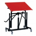 Výškově nastavitelný stojan v rastru 25 mm je vyroben z ocelové konstrukce. Možnost nastavení náklonu pracovní plochy v rozsahu 15 ° nebo 30 °. 20mm hrana na jedné straně brání vypadnutí předmětů. Pohyb zajišťují 4 otočná kola s valivými kuličkovými ložisky, z nichž dvě jsou opatřeny brzdou.Transportní zvedací stojany s nastavitelným náklonem, do 150 kg, výška 52 - 77,5 cm