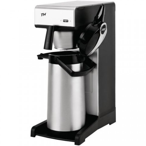 Izolační materiál: konzervované aroma. Kontrolka přítomnosti vody. Vypínač a kontrolka vodního kamene. Zvukový signál: konec přípravy. Láhev s rukojetí pro přenášení.Velkokapacitní kávovar Bravilor Bonamat