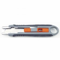 Víceúčelový bezpečnostní nůž s výsuvnou čepelí, speciálně navržený pro silné materiály. Poloautomatické zatahování čepele poskytuje ochranu před pořezáním. Prodloužení čepele až 50 mm. V klidovém stavu se může čepel zablokovat. Kovový konec pro delší životnost.Víceúčelový bezpečnostní nůž s výsuvnou čepelí Mure et Peyrot