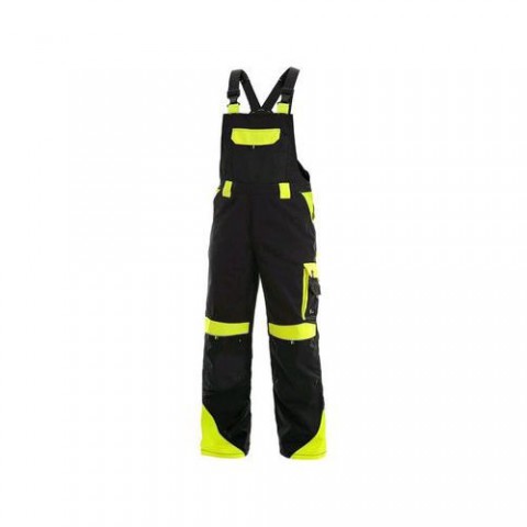 Pánské montérkové kalhoty zateplené flanelem, s náprsenkou, náprsní kapsa s klopou, pas s poutky na opasek, přední klínové kapsy, multifunkční kapsy na obou stranách, kolena zesílena materiálem 600D polyesterem s možností vložení kolenních výztuh, dvě zadní kapsy s klopami, šle s gumou vzadu, reflexní doplňky. Doporučené použití: stavebnictví, strojírenství, lehký průmysl, práce na silnici, odtahové služby, automobilový průmysl, logistika, skladová manipulace, spedice, autoservisy, údržba, montáže, zemědělství, zahrada, hobby. Velikost: 46-62 Sezóna: zimníZahradníky CXS SIRIUS BRIGHTON, zimní, pánské, černo-žluté